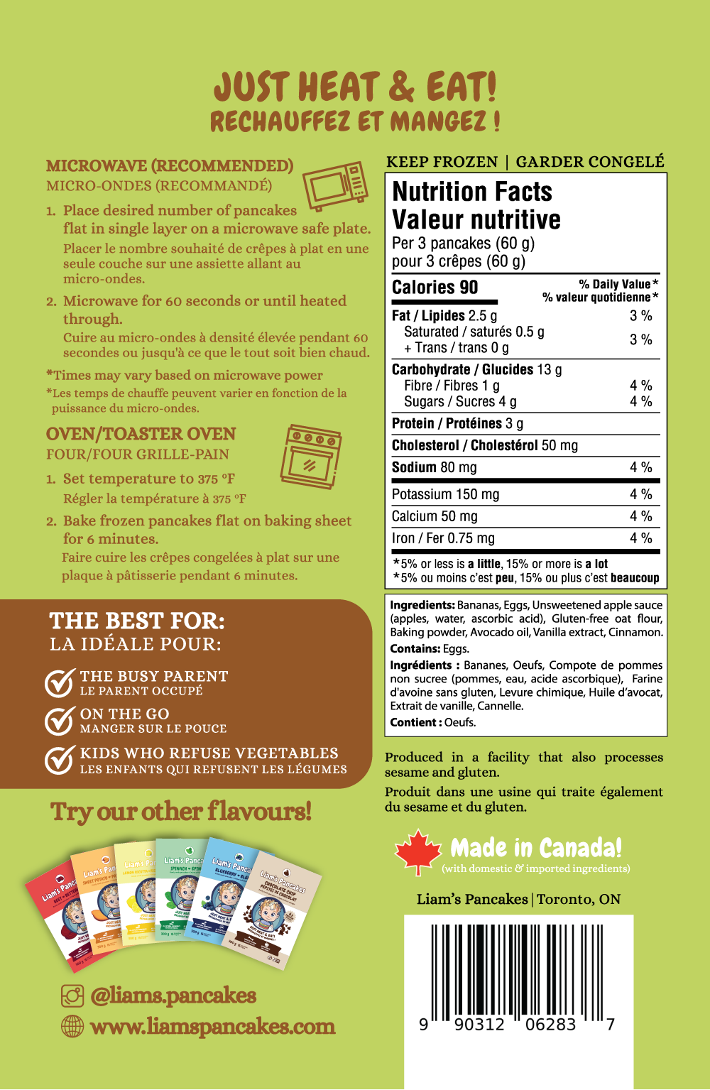 Ingredients: banana, eggs, unsweetened apple sauce, gluten free oat flour, vanilla, baking powder, cinnamon, avocado oil
