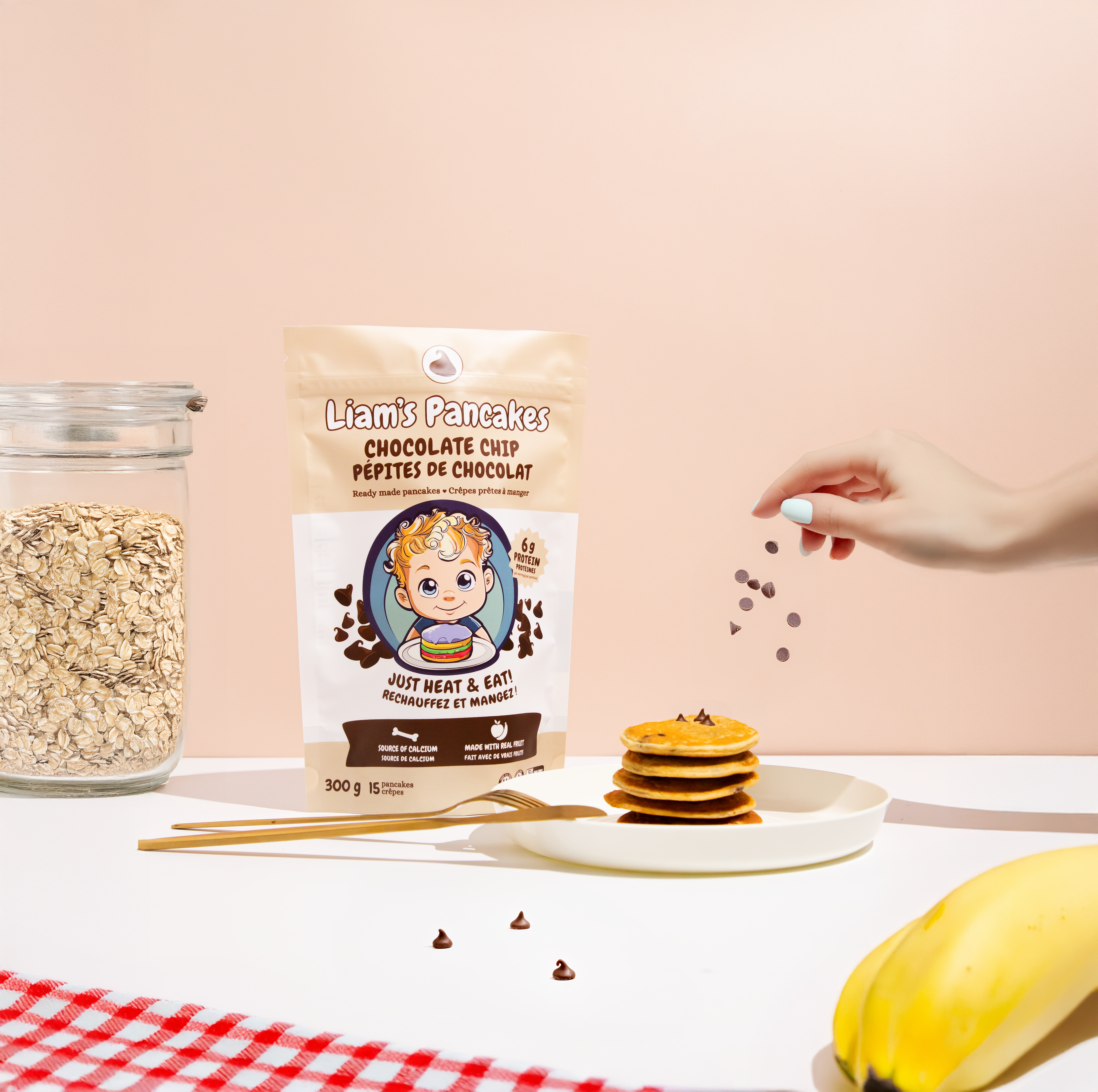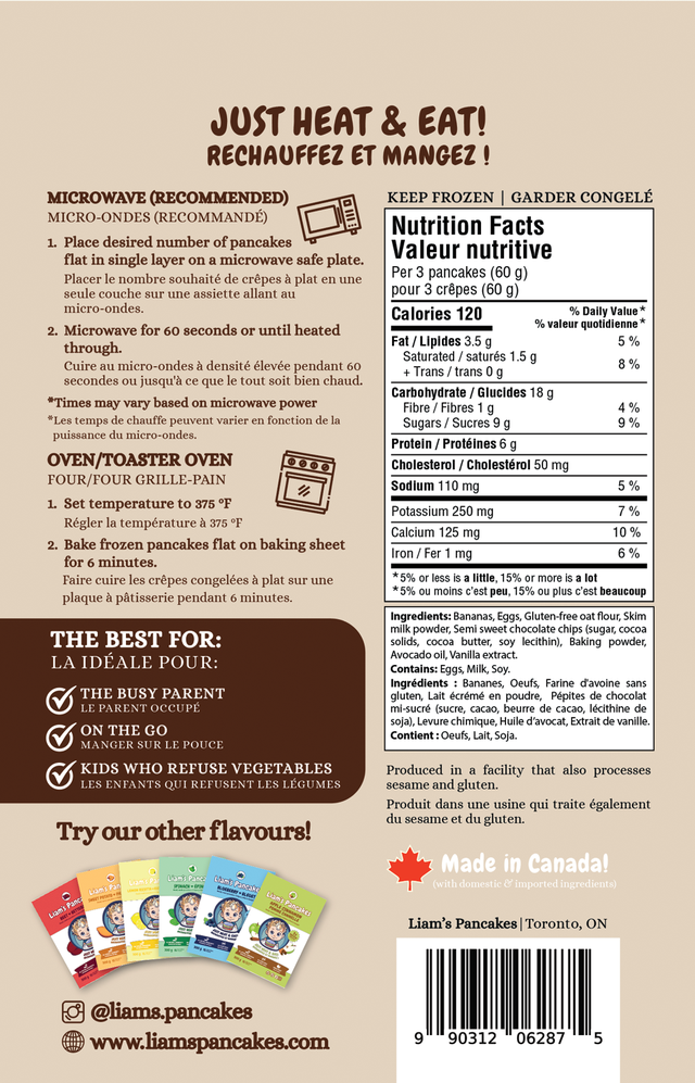 Ingredients: banana, eggs, skim milk powder, gluten free oat flour, vanilla, baking powder, avocado oil, chocolate chips